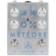 Caroline Guitar Company Météore Lo-Fi Reverb 10th Anniversary Edition; Effects Pedal for Electric Guitar; the Météore keeps the original signal path analog and pure, while giving you overdrive and regeneration controls to take you from spring reverb sounds to something much bigger; Controls: Level, Attack, Regen, Size; Switch: Dark / Bright; LED: Effect On; Footswitches: Effect Bypass, Havoc; Connections: Input (1/4" Jack), Output (1/4" Jack); Power Supply connector: Barrel Connector 5.5 x 2.1 mm, center negative; powered by a 9 V DC Power Supply (not included); suitable optional Power Supply: Item no. #409939; True Bypass; Dimensions (W x D x H): 94 x 119 x 43 mm (3,7" x 4,7" x 1,7"); Weight: 450 g (0,99 lbs); Handmade in USA; Finish: 10th Anniversary Edition, silver; Note: Battery operation is not supported