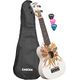 Cascha Dreamcatcher Sopran; Sopran Ukulele; Body: Basswood; Neck: Basswood; 12 frets; Nut width: 36 mm; Position markers: 5th, 7th, 10th, frets; Tuning pegs: Fixed guitar tuners; Fingerboard and bridge: WPC; Finish: Dreamcatcher motif, high-gloss white body; Includes gig bag and 3 picks