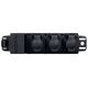 Contrik PowerBAR XO CPB-T1-T3 - multiple socket strip; Connections: 3x powerCON TRUE1 TOP OUT (with protective cover) and 1x powerCON TRUE1 Input (with protective cover); Protection class: IP 65 & IP 67; Self-closing caps, UV-resistant material (UL 746C F1 certified); Cable cross-section: 2.5 mm² ; Rated voltage: 250V/AC; Rated current: 16A; Mounting options: powerBAR truss clips, screw and Velcro mounting holes; Housing: Impact-resistant, non-conductive, flame-retardant polymer housing; Colour: Black; Dimensions (WxDxH): 245 x 60 x 69 mm; Weight: 0.65 Kg