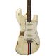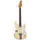 Friedman VINTAGE S-AMRTN-TTT-DN142-XTR; ST-Style Electric Guitar; Medium Aged; finest aged hardwoods; nitro finish and Plek-finished fretwork; Body: Alder; Neck: Maple; Fingerboard: Rosewood (Dalbergia Latifolia) ; Neck Mount: Bolt-On; Inlays: White Dots; 22 frets; Nut: Bone; Scale: 648 mm (25,5"); Pickguard: Parchment, 3-ply; Pickups: Classic Single (Bridge), Classic Single (Middle), Classic Single (Neck); Controls: Volume, Tone; Switch: 5-Way; Tremolo: Gotoh 510 2 Point; Hardware Finish: Nickel; incl. Case; Colour: Tinted White with red/blue racing stripes; Made in USA