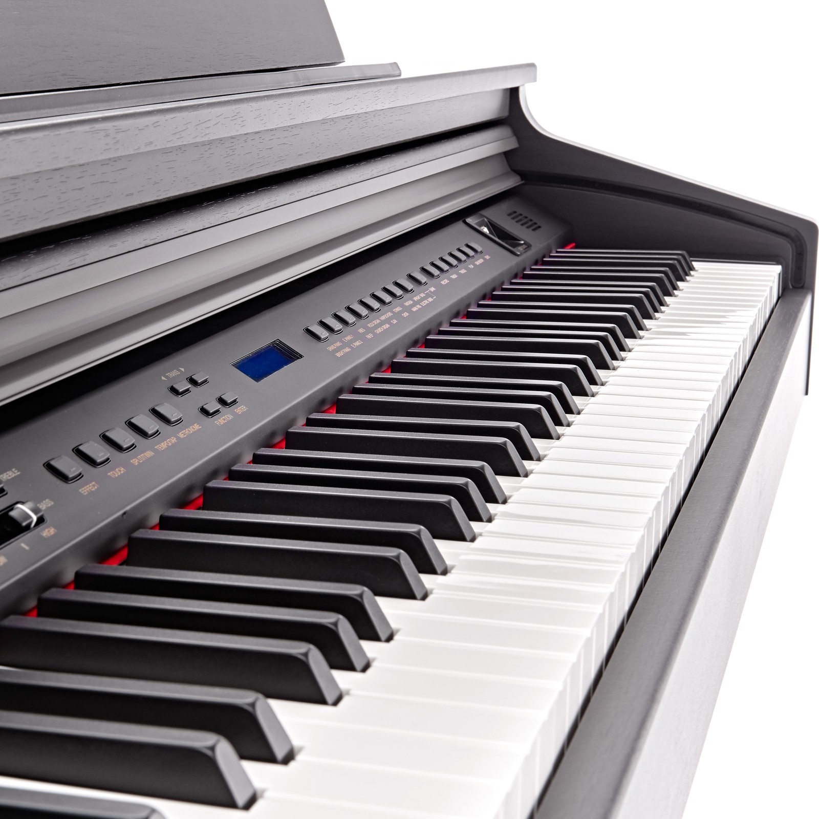 Las siglas de abreviatura en el título del Hemingway DP-501 representan cada una de las variantes de color. En consecuencia, el piano está disponible en antracita ("AT"), en palisandro ("RW"), es decir, en tono madera, y en blanco ("WH"). Tiene una grabadora MIDI interna y una grabadora USB-MIDI (USB-to-Device), así como una salida MIDI y una USB to host. Además de la entrada RCA estéreo, hay un adaptador USB Bluetooth que, por ejemplo, se puede usar para conectar de forma inalámbrica un smartphone o una tablet. Con ello, la señal del reproductor se escucha a través de los altavoces incorporados, algo muy útil para escuchar canciones o simplemente para improvisar tocando.