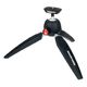 Dieses Mini-Stativ von Manfrotto verfügt über eine erstaunlich stabile Alu-Grundkonstruktion einschließlich eines gut arretierbaren Kugelkopfes und einer griffigen 1/4-Stativschraube. Die Beine lassen sich in Anstellwinkel und Länge verstellen, so dass sich ein in Höhe und Aufstellfläche variables Tischstativ ergibt, das - zusammengeklappt - durchaus aber auch als stabiler Handgriff verwendet werden kann. Meines Erachtens eine optimale Hilfe für die Aufstellung von leichter Kamera, Handy, LED-Leuchte oder Mikrofon. Nimmt wenig Platz in der Tasche weg und wiegt kaum etwas.