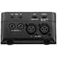 • 2 entradas de micrófono/línea: XLR, ganancia de +75 dB, alimentación fantasma de 48 V conmutable