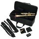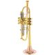 Taylor Trumpets Piranha C-Trumpet; ML bore (11.68mm); yellow brass bell, with bronze flare; seamless brass leadpipe with enlarged Venturi tube for open blow; light weighted instrument; with stainless steel valves; Amado water keys; has a great sound, flexibility and wide dynamic range; whole instrument is polished with a clear lacquer; incl. case and gold-plated ML mouthpiece