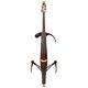 Yamaha SVC300C Silent Cello, resonating chamber, producing the most realistic acoustic like tones and resonating sound, easy to transport because of foldable knee support, worm gear type tuning pegs, body made of spruce and maple, fingerboard made of ebony, Line Out Volume / Phone Out Volume, Blend control (SRT Powered System), Reverb control (2 type), EQ control (Treble, Bass), Sound type and tuner switch button, power supply: AA Size 1.5V Battery 2pcs. (not included) or AC Adapter (not included), color: antique darkbrown, comes with soft case.
